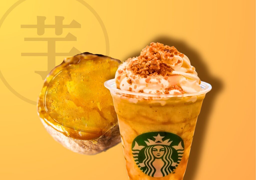 Canvaで作成した完成バナーがこちらです。※テンプレートなどは使用しません。※お月見シリーズのパイとドリンクの写真が見つからず、チェリーパイとポテトで代用しました。